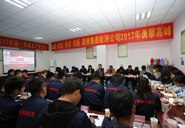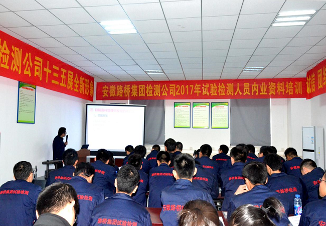 4月8日,檢測公司在肥召開2017年試驗檢測人員內業(yè)資料培訓暨第一季度生產安全會,會議由檢測公司副總經理佐群主持。路橋集團黨委委員、總工程師王潔蒞臨會議并作重要講話。檢測公司領導班子成員、機關各部門、各項目試驗室負責人近五十人參加會議。