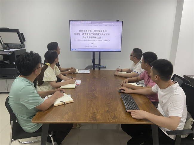 2022年7月4日上午,公司機關團支部組織團員學習宣貫建工控股黨委書記、董事長趙時運《在安徽建工控股第一次團代會上的講話》和建工控股團委書記、黨工部副部長聶猛所作的《團委工作報告》,團員們認真聆聽,學習熱情高漲。會后,團員們紛紛表示作為新時代的中國青年,認真踐行“請黨放心,強國有我”的錚錚誓言,始終做到對黨忠誠、擔當實干、廉潔自律,為加快建設一流安徽建工,打造具有重要影響力的“三地一區(qū)”和現(xiàn)代化美好安徽作出自己的貢獻,以優(yōu)異的成績迎接黨的二十大勝利召開!