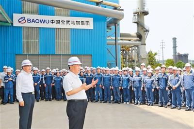 馬鞍山市因鋼而設(shè)、因鋼而興。習近平來到中國寶武馬鋼集團,了解企業(yè)生產(chǎn)經(jīng)營情況,察看重點產(chǎn)品展示。隨后,習近平走進優(yōu)質(zhì)合金棒材車間,察看加熱爐、初軋機、中軋機等運行情況。車間外,企業(yè)勞動模范、工人代表看到總書記來了,熱烈鼓掌。習近平親切地同大家打招呼。他指出,疫情發(fā)生以來,馬鋼克服困難,率先復(fù)工復(fù)產(chǎn),上半年產(chǎn)量和營收同比實現(xiàn)“雙升”。要抓住深化國有企業(yè)改革和推動長三角一體化發(fā)展的重大機遇,加強新材料新技術(shù)研發(fā),開發(fā)生產(chǎn)更多技術(shù)含量高、附加值高的新產(chǎn)品,增強市場競爭力。勞動模范是共和國的功臣,要大力弘揚勞模精神。