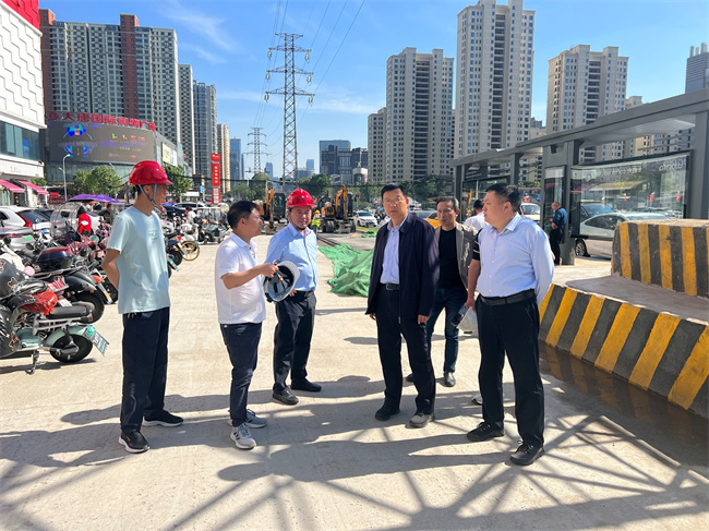 張剛一行深入潛山路(望江西路-長江西路)改造工程項目施工現場,全線查看項目施工情況。針對下一步安全質量管理,張剛提出具體要求:一是抓好安全文明施工。各管線單位交叉作業(yè),安全意識不能松懈。圍擋噴淋要常開,同步做好裸土覆蓋、通行道路保潔等揚塵防治工作;二是加強質量管理。收邊收口要注重細節(jié),強化過程管控,精益求精;三是主動回應市民關切。與沿線居民建立良好溝通機制,把施工帶來的投訴降至最低;四是加強沿線管線保護。高溫季節(jié)來臨,任何管線破壞必將給沿線居民生活帶來極大干擾,施工過程要慎之又慎。五是做好宣傳工作。黃山路以南放行區(qū)域,交通受供電桿線影響,要做好宣傳引導,減少輿情壓力。