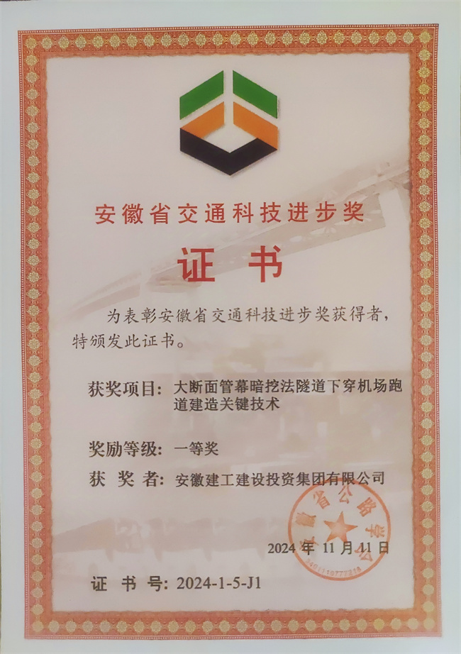 安徽建工建設(shè)投資集團(tuán)申報(bào)的5項(xiàng)研究成果獲獎(jiǎng),其中《大斷面管幕暗挖法隧道下穿機(jī)場跑道建造關(guān)鍵技術(shù)》榮獲一等獎(jiǎng);建工建投集團(tuán)被授予2023-2024年度先進(jìn)會(huì)員單位;安徽省公路學(xué)會(huì)橋隧專委會(huì)被授予2023-2024年度先進(jìn)學(xué)會(huì)和分支機(jī)構(gòu)稱號(hào)。公司黨委委員、副總經(jīng)理、總工程師陳莘作為獲獎(jiǎng)單位代表上臺(tái)領(lǐng)獎(jiǎng)。