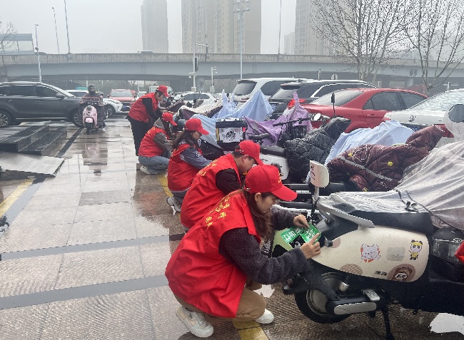 一分公司團總支組織動員機關(guān)青年志愿者為周邊住宅區(qū)電動車粘貼反光貼,提升居民夜間行車的安全性,以“小行動”匯聚“大溫暖”。