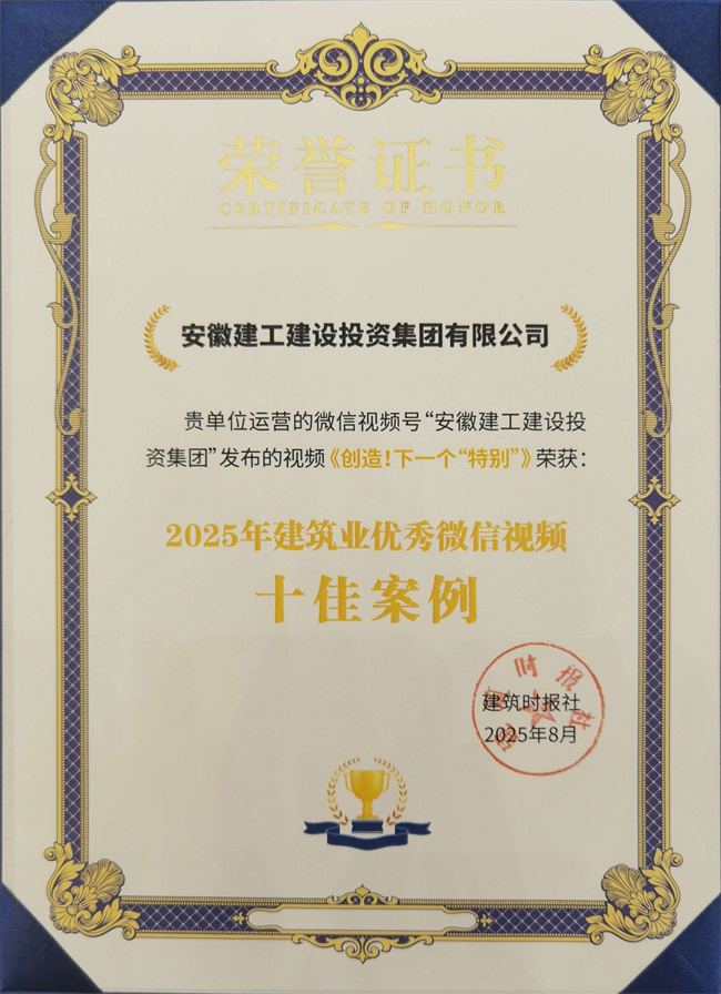 以持續(xù)優(yōu)質(zhì)的原創(chuàng)內(nèi)容、行業(yè)領(lǐng)先的傳播影響力,公司官方微信公眾號(hào)再度斬獲“2025年全國建筑業(yè)優(yōu)秀微信公眾號(hào)”榮譽(yù)稱號(hào),成為建工集團(tuán)系統(tǒng)內(nèi)唯一一家連續(xù)6年獲此殊榮的單位。為契合當(dāng)下以視頻號(hào)為代表的新媒體傳播正深度重構(gòu)建筑業(yè)品牌塑造與價(jià)值傳遞的模式,今年大會(huì)特別評(píng)選“2025年建筑業(yè)優(yōu)秀視頻號(hào)”,并首次評(píng)選“2025年建筑業(yè)優(yōu)秀微信視頻十佳案例”。公司制作的主題微視頻《創(chuàng)造!下一個(gè)“特別”》以創(chuàng)意敘事和人文視角展現(xiàn)建筑業(yè)與時(shí)代共鳴的品牌溫度,被授予“2025年度建筑業(yè)優(yōu)秀微信視頻十佳案例”。
