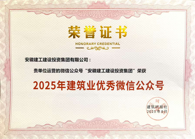 8月7日,由建筑時(shí)報(bào)主辦的“2025年建筑業(yè)微信公眾號(hào)運(yùn)維交流研討會(huì)暨2025年建筑業(yè)優(yōu)秀微信公眾號(hào)、視頻號(hào)發(fā)布會(huì)”在湖南省長沙市舉辦。公司官方新媒體平臺(tái)表現(xiàn)亮眼:微信公眾號(hào)連續(xù)六年蟬聯(lián)“全國建筑業(yè)優(yōu)秀微信公眾號(hào)”,視頻號(hào)榮獲“2025年建筑業(yè)優(yōu)秀視頻號(hào)”稱號(hào),2025年元旦發(fā)布的主題視頻《創(chuàng)造!下一個(gè)“特別”》更獲評(píng)“2025年度建筑業(yè)優(yōu)秀微信視頻十佳案例”獎(jiǎng)項(xiàng),為安徽省唯一獲該獎(jiǎng)項(xiàng)的建筑業(yè)企業(yè)。