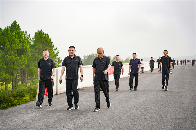 胡晨在講話中強(qiáng)調(diào),涇青高速作為安徽省“五縱十橫”高速公路網(wǎng)的重要組成部分,既是串聯(lián)區(qū)域交通的“動(dòng)脈線”,更是推動(dòng)地方經(jīng)濟(jì)發(fā)展、改善民生福祉的“希望路”。他高度認(rèn)可建工建投集團(tuán)在項(xiàng)目建設(shè)中展現(xiàn)的責(zé)任擔(dān)當(dāng)與專業(yè)實(shí)力,寄語(yǔ)全體建設(shè)者以此次健步走活動(dòng)為契機(jī),將徒步中迸發(fā)的活力、毅力轉(zhuǎn)化為工作干勁,全力推進(jìn)項(xiàng)目建設(shè),確保這條連接“詩(shī)意山水”與“發(fā)展機(jī)遇”的通道早日通車、惠及百姓。