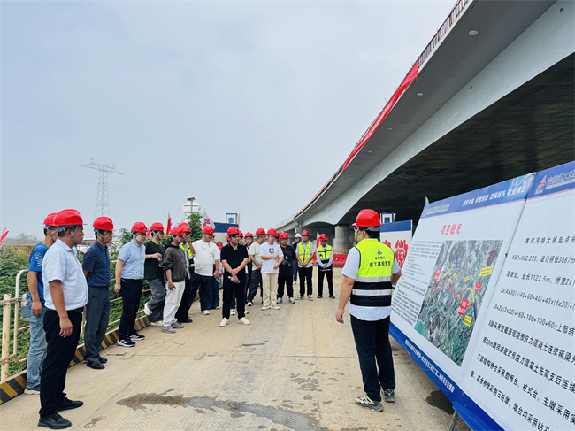 在黃滸河特大橋施工現(xiàn)場(chǎng),與會(huì)代表聽取了項(xiàng)目負(fù)責(zé)人關(guān)于工程整體概況的介紹,并依次參觀了第四聯(lián)現(xiàn)澆箱梁和第八聯(lián)懸臂現(xiàn)澆箱梁等重點(diǎn)施工區(qū)域。觀摩期間,施工現(xiàn)場(chǎng)連續(xù)正常作業(yè),代表們不僅可直觀了解各工序?qū)嶋H操作流程,還能與現(xiàn)場(chǎng)管理人員開展技術(shù)交流與經(jīng)驗(yàn)分享。
